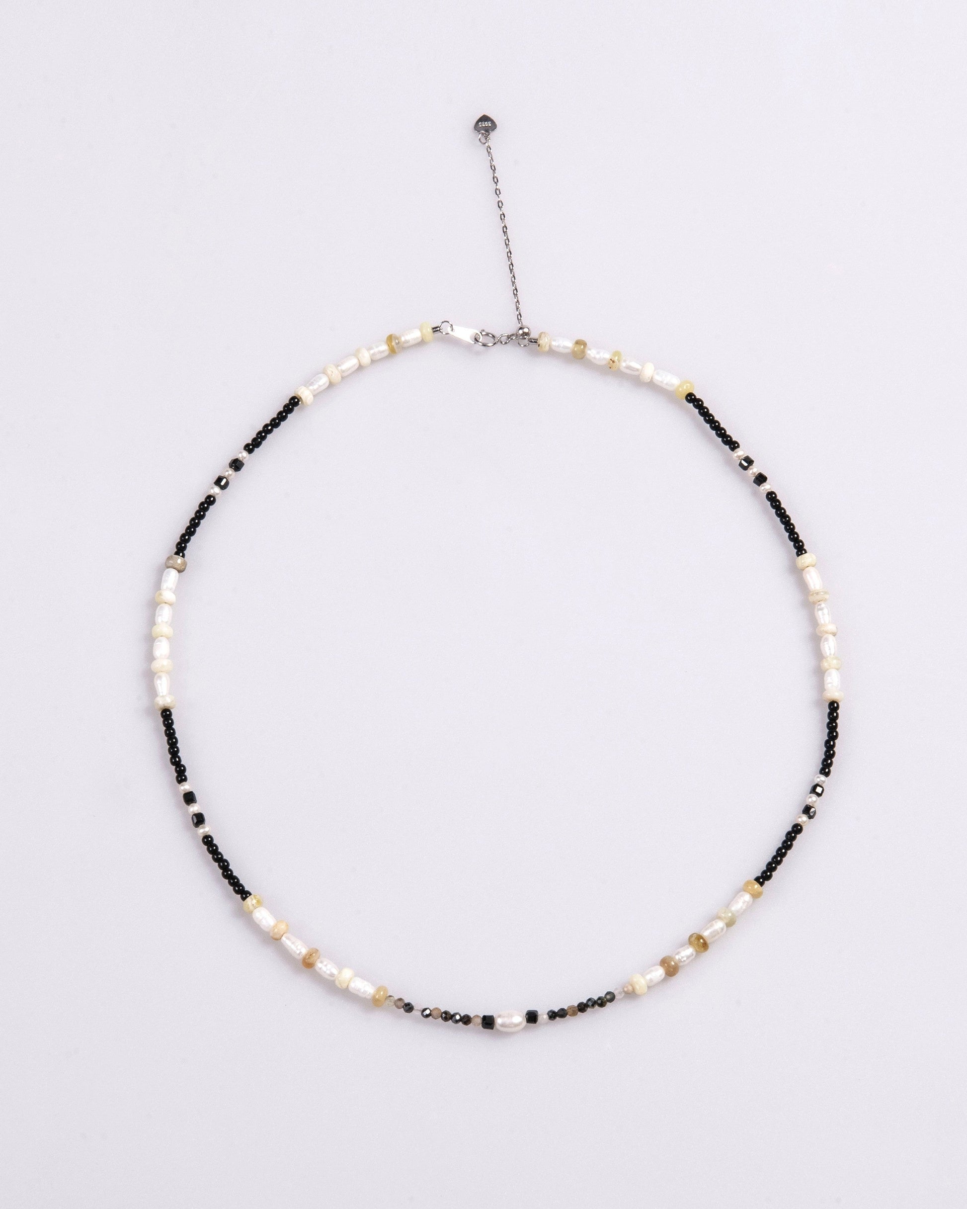 Clean lines of contrast, where black crystals meet natural pearls and hints of pale gold. Night Stride evokes the glow of city lights on an autumn night. Ideal for everyday wear, urban walks or layered with leather and jackets, it adds a touch of effortless edge and composure to your style.