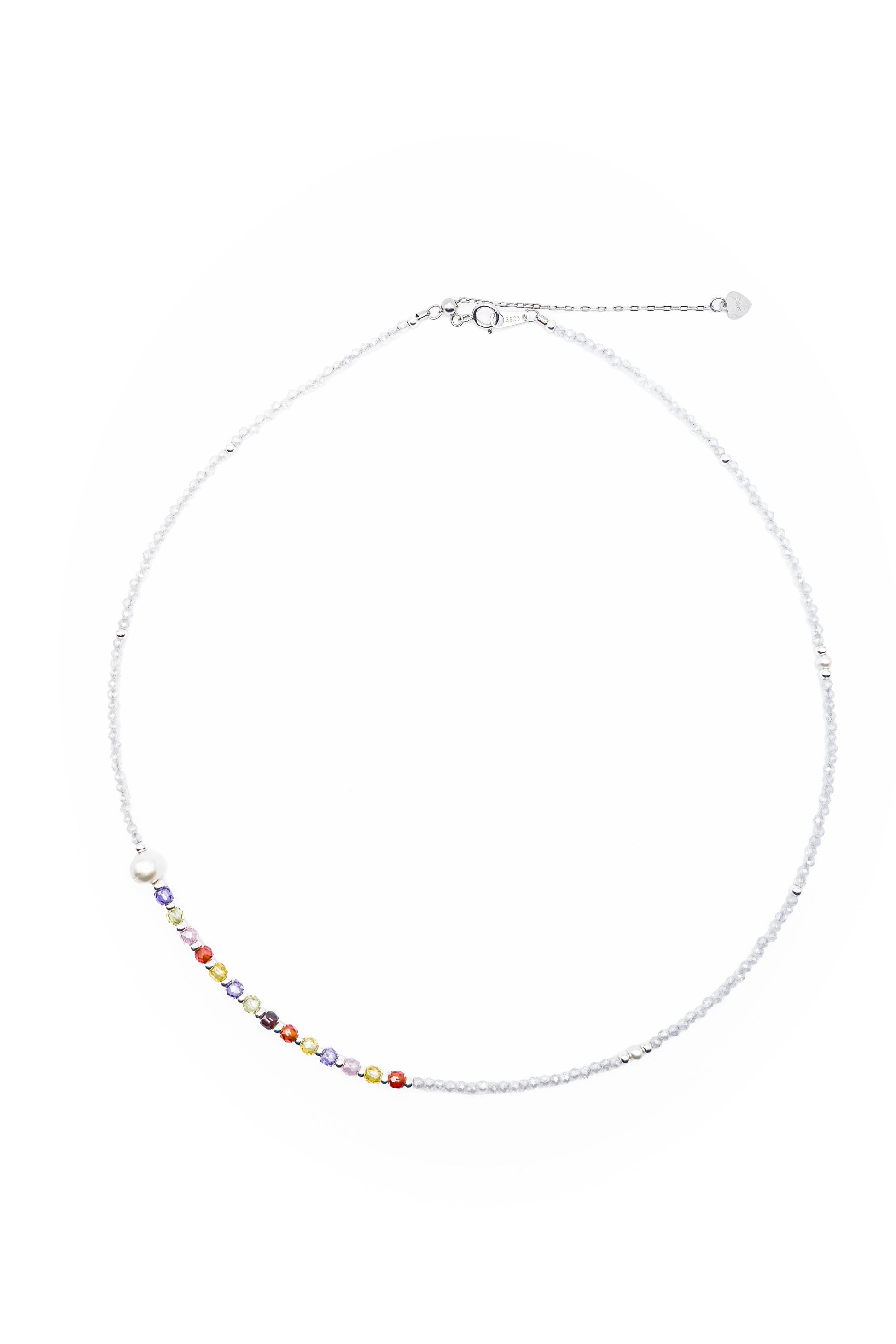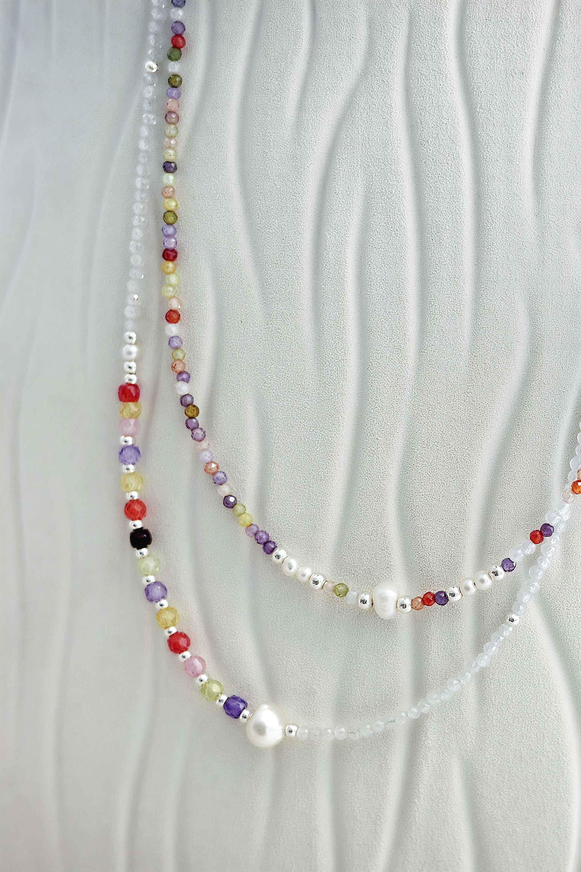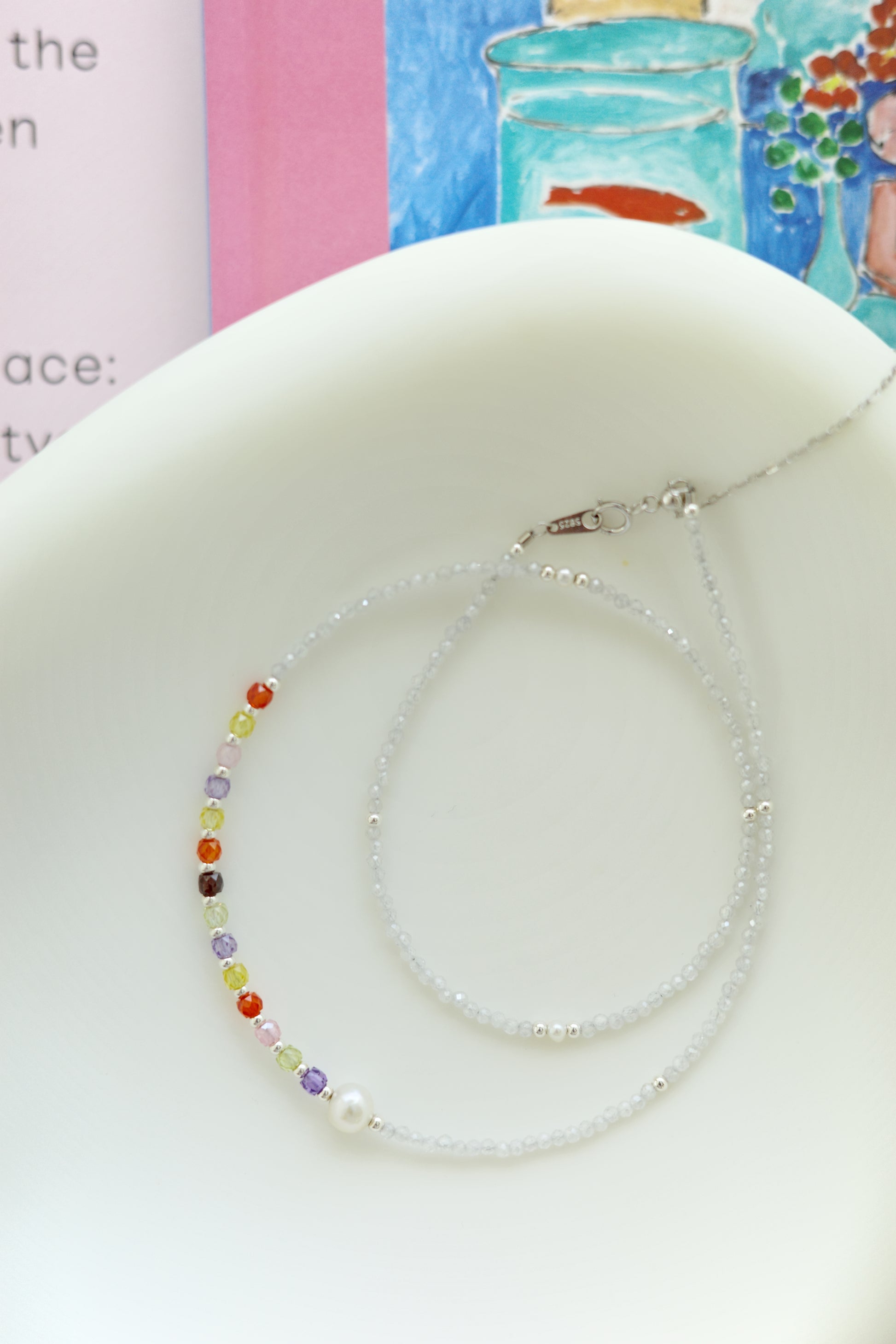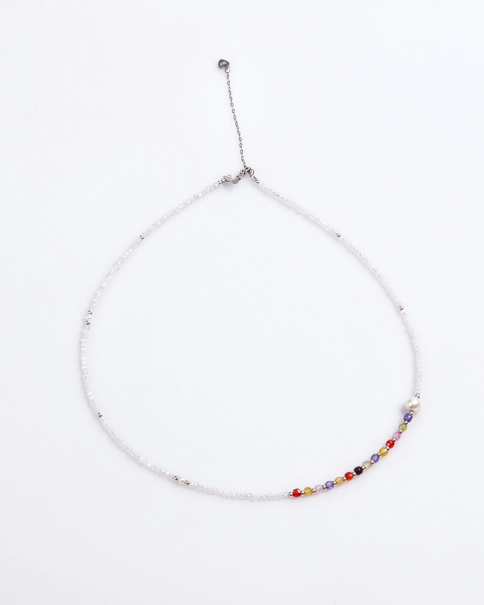 Dayglow Ray keeps it clean with translucent seed beads and silver accents, while one short burst of rainbow tones glows like a quick flash of joy.
