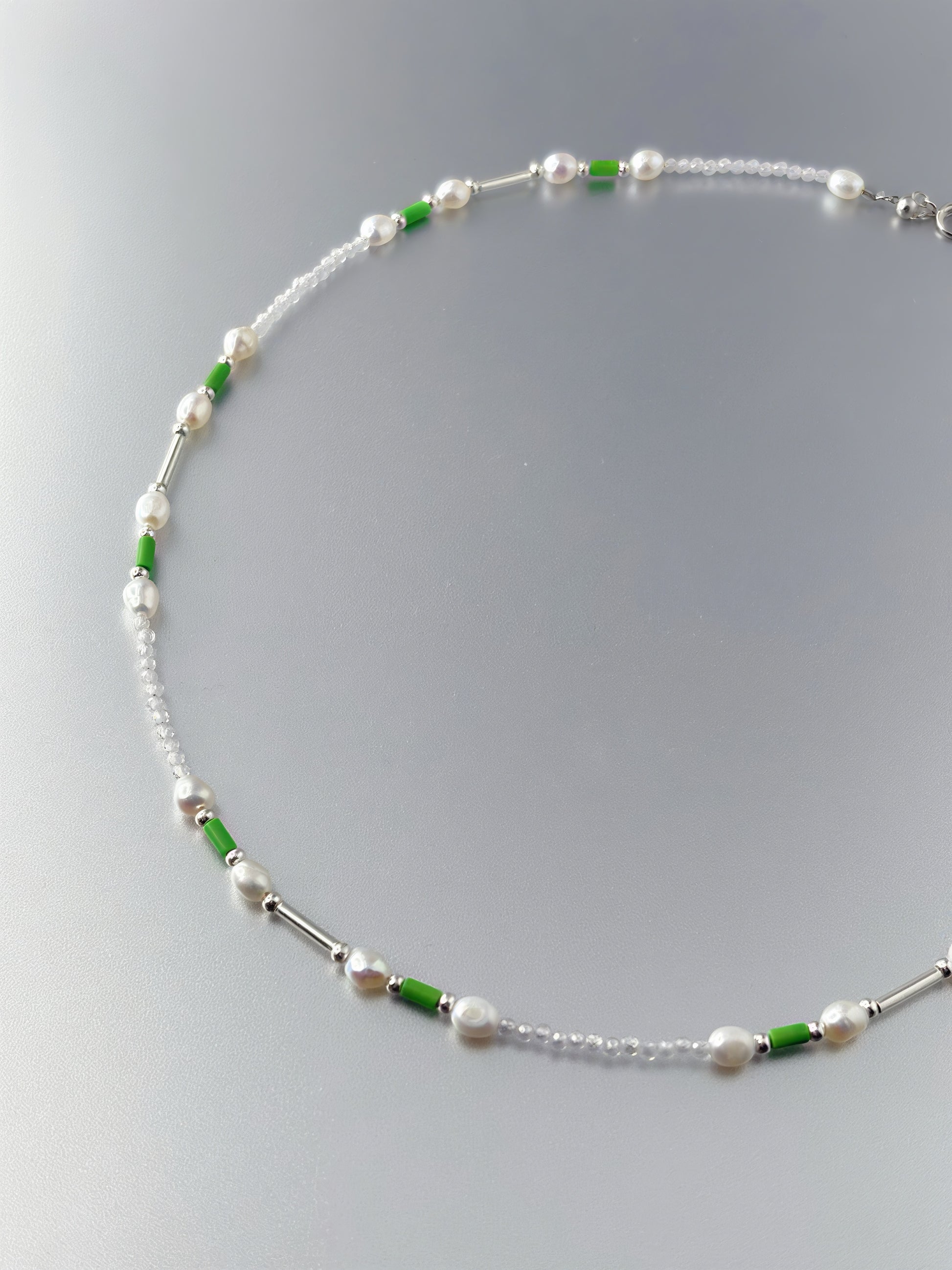Summer Zing brings together translucent crystal beads, juicy green accents, and freshwater pearls in a rhythm that feels like summer itself.